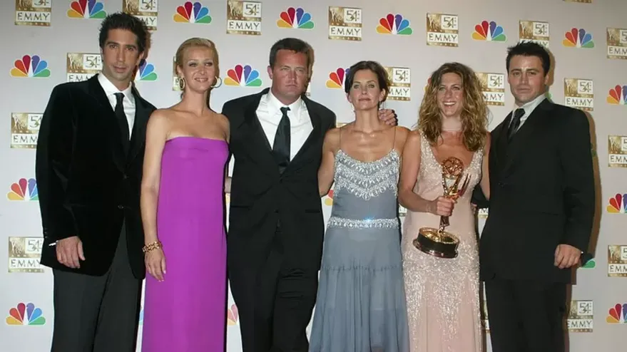 La serie Friends, que estuvo al aire entre 1994 y 2004, ocurre en Nueva York y gira alrededor de un grupo de amigos, interpretados por Jennifer Aniston, Courtney Cox, Lisa Kudrow, Matt Le Blanc, Matthew Perry y David Schwimmer.