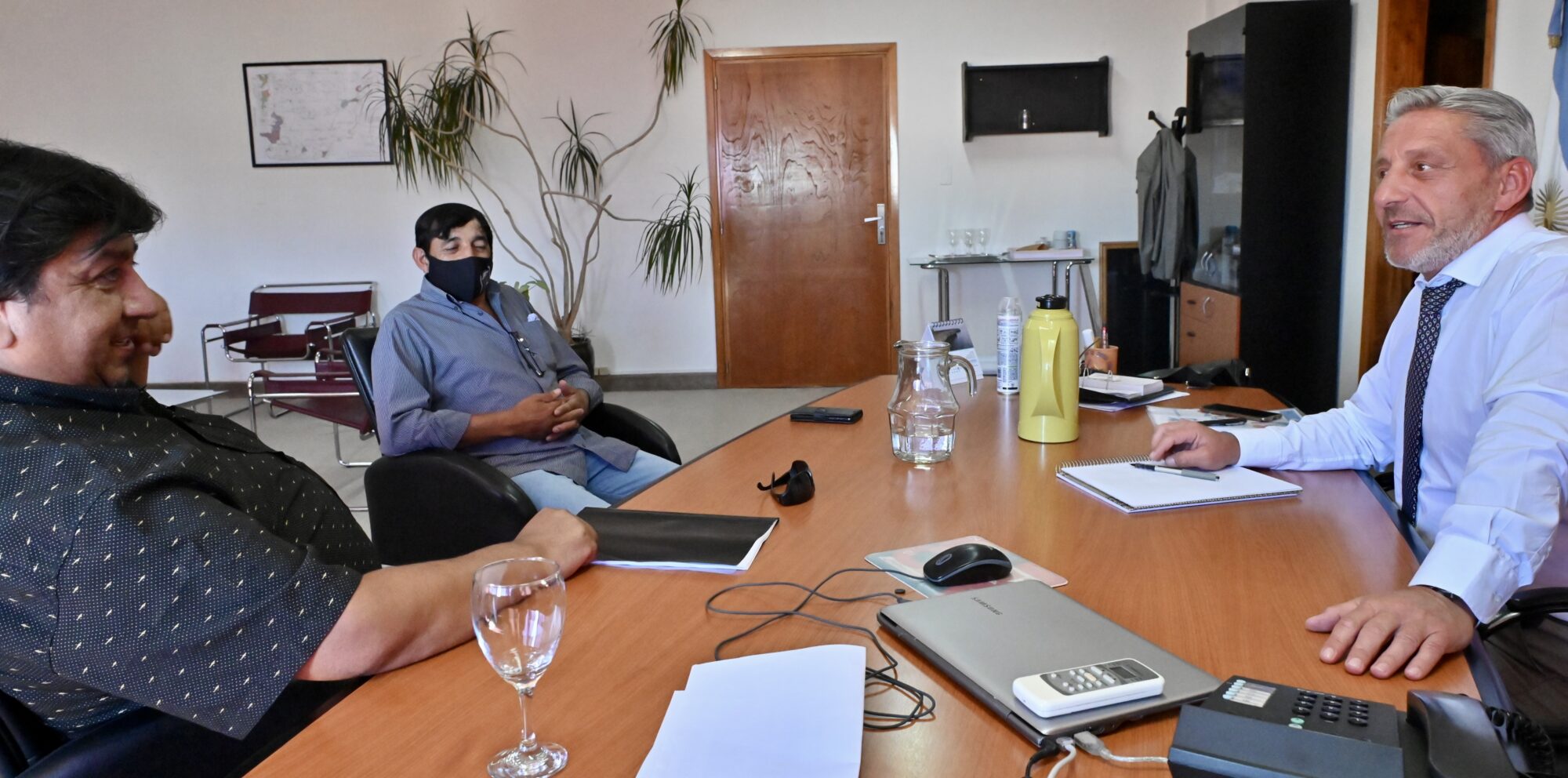 El gobernador del Chubut, Mariano Arcioni, recibió hoy al intendente de José de San Martín, Rubén Calpanchay, con quien dialogó sobre las obras que prontamente iniciarán en la localidad, entre las que se destacan la construcción del cerco perimetral del Gimnasio Municipal, cordones cuneta, extensión de red de gas y la construcción de la cisterna de agua, tan esperada por sus habitantes.