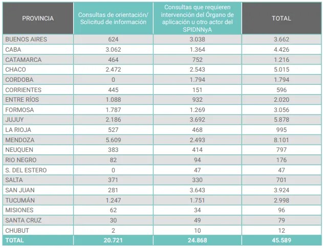 Metadata accedió a un informe de la Secretaría Nacional de Niñez, Adolescencia y Familia (SENAF), que exhibe las consultas telefónicas provincia por provincia a la línea 102 para chicas, chicos y adolescentes que pueden denunciar maltrato, vulneración de derechos, asesoramiento, contención, violencia digital como ciberbullying o grooming y abandono, entre otras.