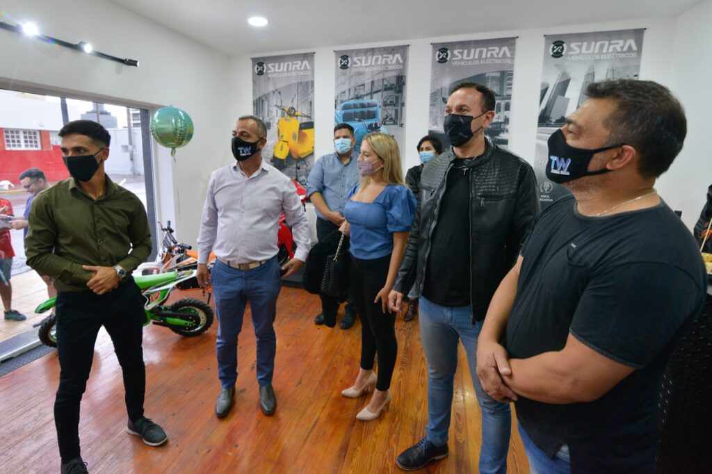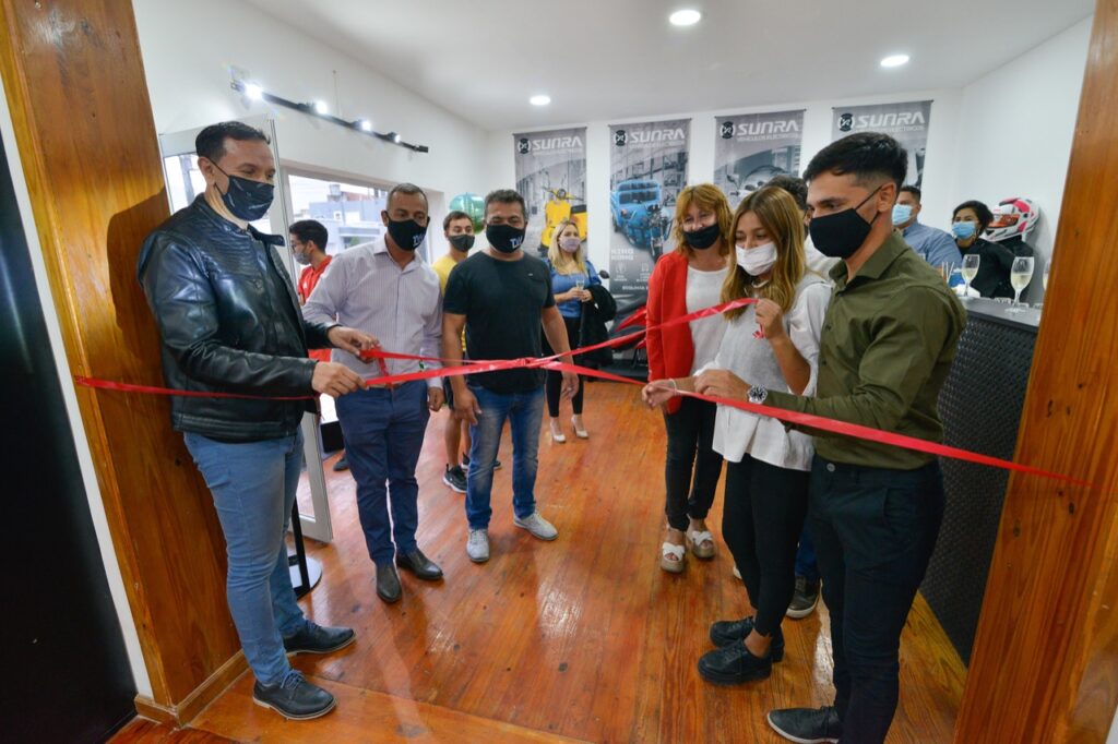 El intendente Adrián Maderna participó de la inauguración del nuevo local comercial de la firma Sunra Vehículos Eléctricos, ubicada en la calle San Martín 562. Estuvo acompañado por el concejal Héctor Castillo y el Coordinador de Inspecciones Generales, Héctor López.