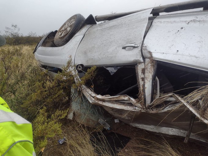 Las lluvias complican el tránsito en la Doble Trocha entre Trelew y Puerto Madryn. Hoy más temprano, otro vehículo volcó a la altura del Bajo Simpson. Horas más tardes, el intendente de Cholila, Silvio Boudargham sufrió un accidente similar que terminó con el auto volcado, pero sin lesiones de gravedad.