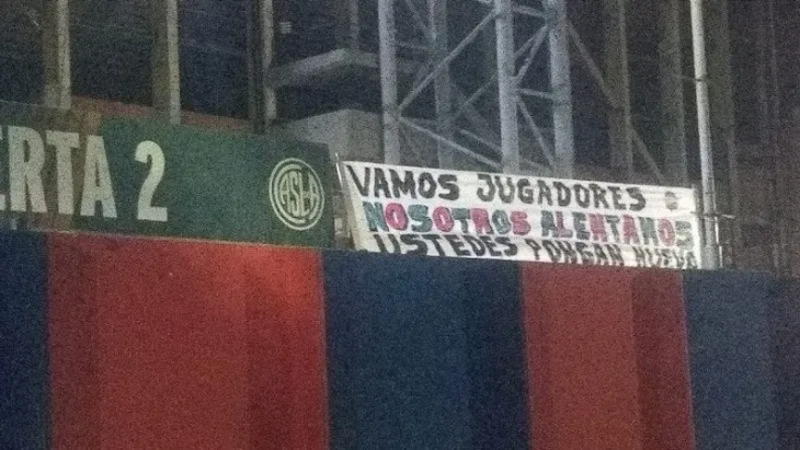 Con ese motivo, el Nuevo Gasómetro apareció con unas banderas colgadas dirigidas a los jugadores. Si bien no tienen un mensaje violento y hasta muestra cierto apoyo, la realidad es que las cosas no están nada bien en el “Ciclón”.