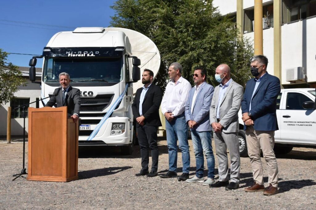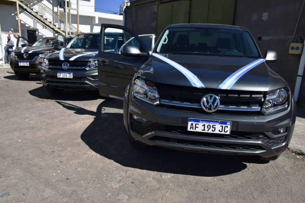 En esta oportunidad se realizó la entrega, a través del Ministerio de Infraestructura, Energía y Planificación, de dos camionetas doble cabina 4×2 y una camioneta 4×4 modelo Alaskan y dos camionetas doble cabina 4×2 Amarok por un monto de $31.523.000,00; y un camión tipo tractor para servicio pesado IVECO por $17.900.000. El mismo es utilizado para el transporte de agua potable e insumos a las localidades del interior de la Provincia.