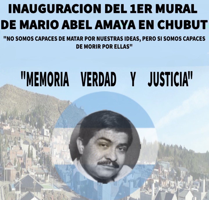 Este 24 de marzo a las 11 horas en la vecinal del Barrio Mario Abel Amaya de la ciudad de Comodoro Rivadavia, el Frach realizará un acto cívico para inaugurar el 1° mural de Mario Abel Amaya en Chubut.