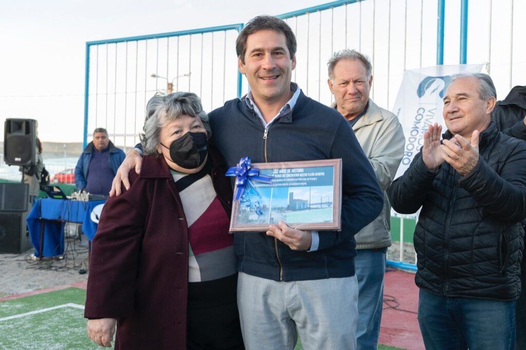 La primera parte de esta serie de trabajos fue inaugurada por el intendente y significó la recuperación de un lugar histórico para Comodoro Rivadavia. El compromiso de la Municipalidad se reflejó con la firma del convenio por parte del intendente y la vecinalista América Melión para que se concrete la segunda etapa, que incluirá el techado del predio deportivo para que se pueda utilizar en cualquier momento del año.