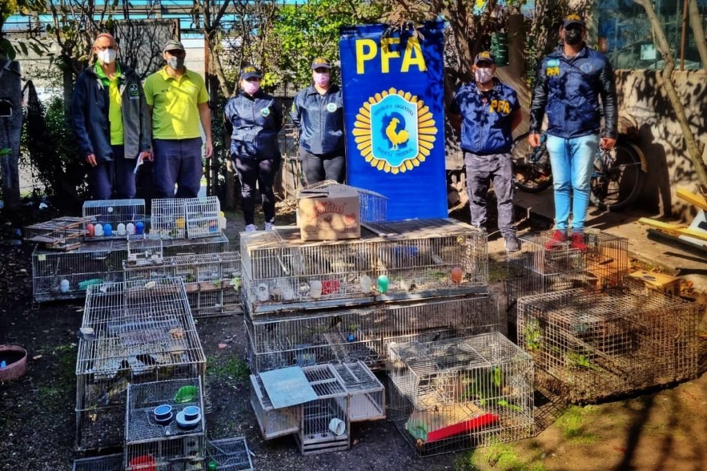 Ejemplares de cata argentina, estornino, cotorra australiana y verdón, entre otras especies, fueron hallados en jaulas y cestos, para ser comercializados, en infracción a la Ley 22.421, de conservación de fauna.