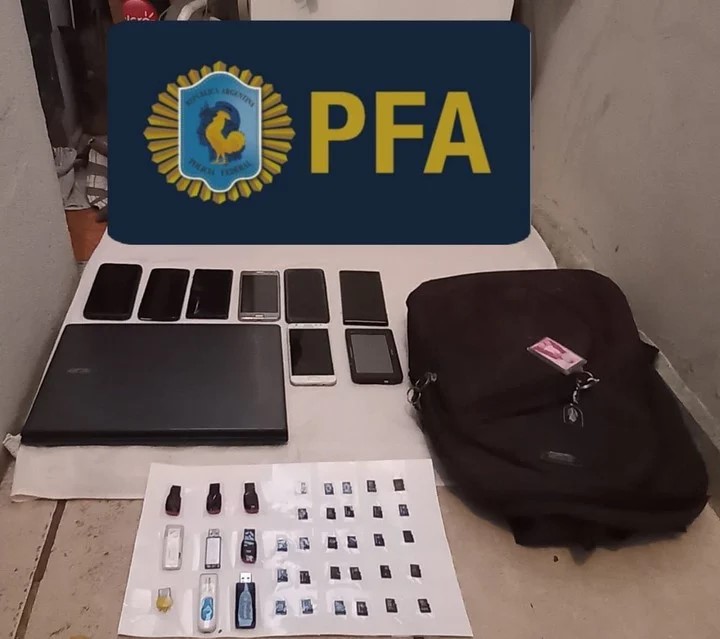 En ese domicilio fue detenido finalmente por la Policía Federal, que secuestró en el lugar gran cantidad de material informático conteniendo imágenes y filmaciones sobre de abuso sexual infantil, 9 pendrives, 28 memorias micro SD, Cds, 6 teléfonos celulares, una notebook y varios dibujos realizados oportunamente por la menor damnificada.