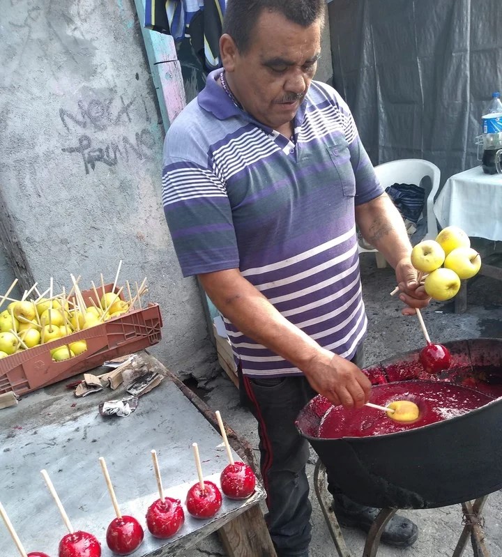 “Llevo muchos años vendiendo raspados, algodones y manzanas caramelizadas aquí por Monterrey para sacar a mi familia adelante. Tengo 35 años vendiendo y vengo de familia de comerciantes”, relató.