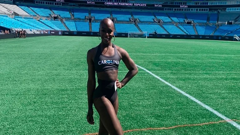 Justine Lindsay se convirtió en la primera mujer trans en integrarse a las Topcats, el equipo de animadoras de los Carolina Panthers.