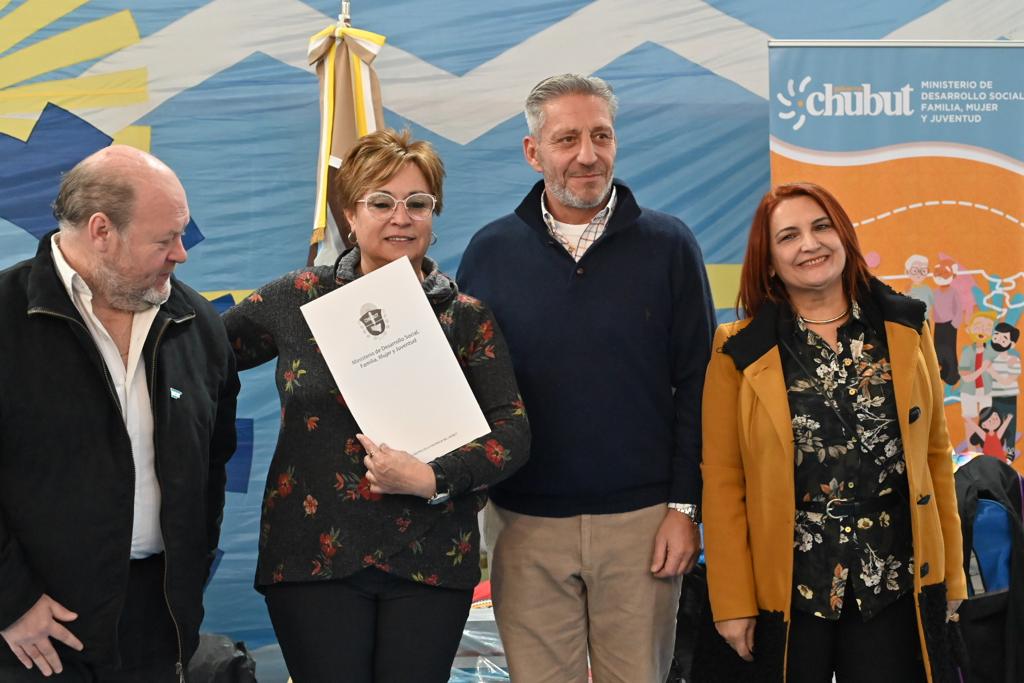 El Ministerio de Educación y la Fundación Banco del Chubut, en tanto, entregaron módulos, insumos y útiles escolares a diferentes establecimientos de la localidad: las escuelas 148, 706 y 2413 Rayito de Sol; el Centro de Servicio Alternativo y Complementario N° 566; y el Centro de Formación Profesional N° 658.