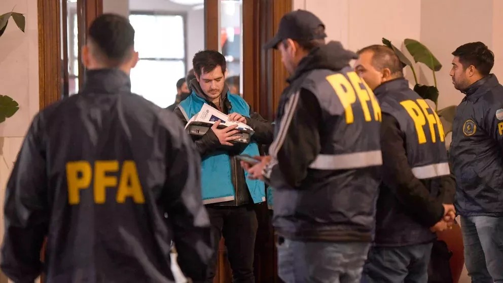 El operativo, a cargo de la Policía Federal, comenzó anoche en el hotel “Plaza Canning” y se extendió hasta la mañana de hoy, luego de decretarse el secreto de sumario en la investigación, informaron fuentes vinculadas al expediente.