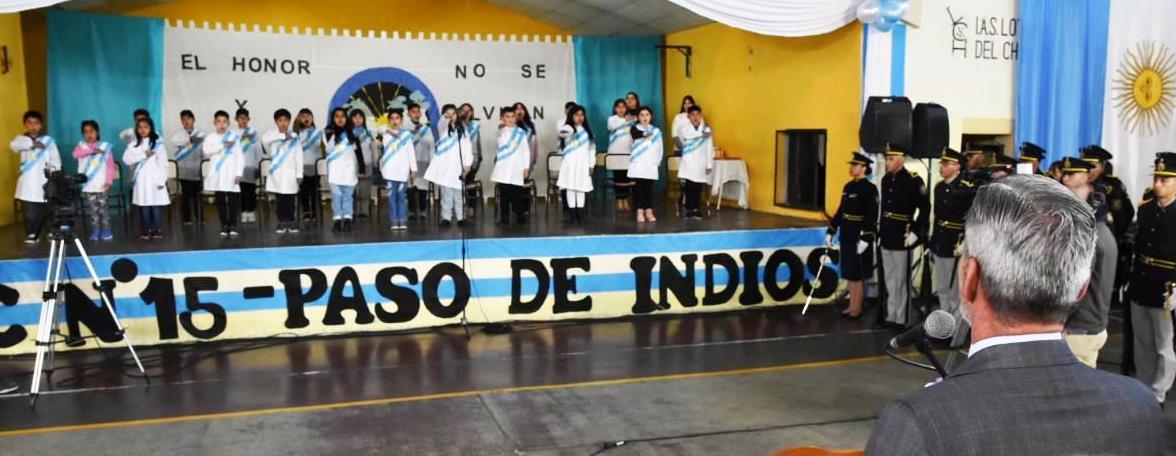 “Sepan que sin esfuerzo nada se consigue, el esfuerzo de ustedes, de su familia y de sus docentes. La patria se construye con el esfuerzo de todos cada día”, resaltó Pichiñan y agradeció “la presencia del Gobernador por siempre dar la cara y eso también es patriotismo. En el momento más difícil de esta provincia que le tocó gobernar se hizo cargo, con sus errores y aciertos, y eso también es amar a la tierra en que nació; por eso agradezco el apoyo incondicional que demuestra con cada una de sus acciones al pueblo de Paso de Indios”.