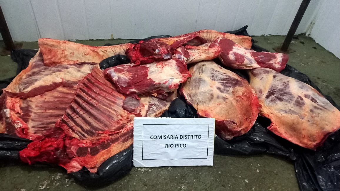 Posteriormente, pudieron interceptar el camión, constatando en la caja la presencia de ocho bolsas negras con carne faenada en su interior.