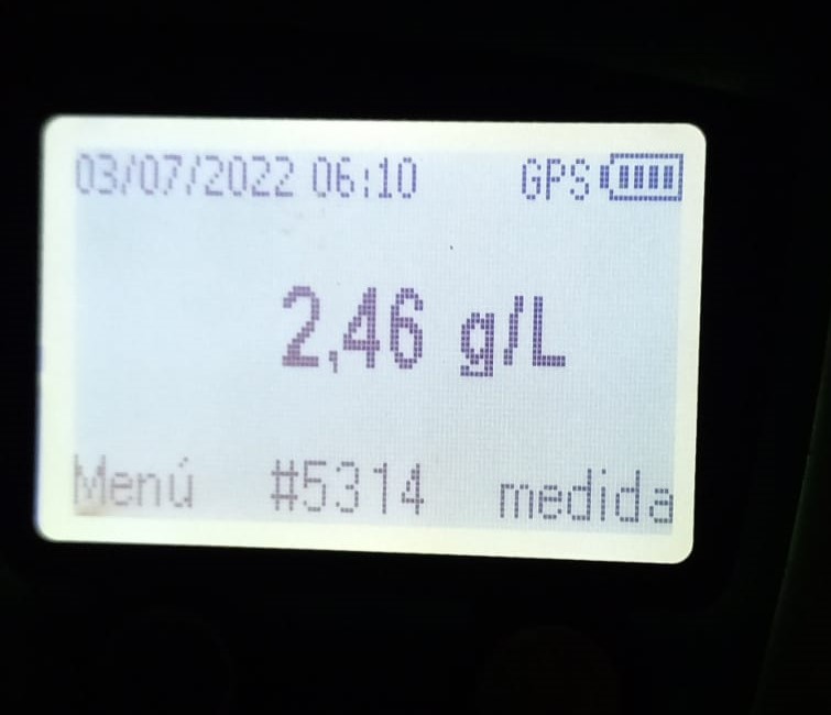 El personal del área de Tránsito realizó el test de alcoholemia el cual arrojó un resultado de 2,46 g/l, por lo que se labró un acta de infracción y procedieron a la demora del conductor.
