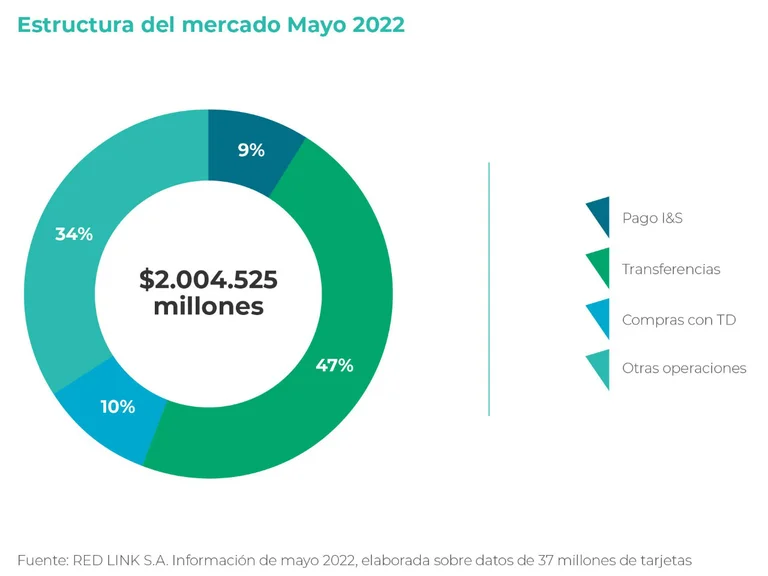 En total, el uso de dinero electrónico en Link superó en mayo 2022 los 2 billones de pesos, un aumento nominal del 6,7% en mayo y 91,7% en los últimos doce meses, sensiblemente por encima de la inflación de esos períodos.
