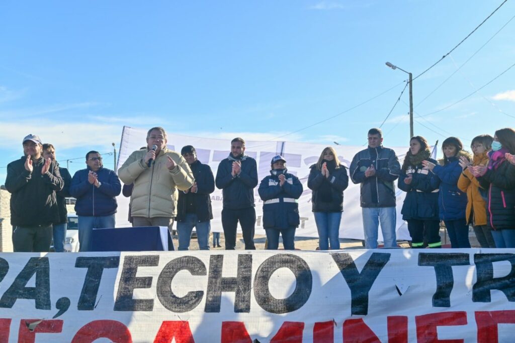 Yauhar junto a funcionarios de Trelew y el MTE en los anuncios de obras para el Barrio Moreira III y IV.