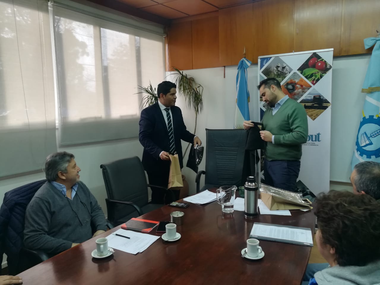 Los ministros de Agricultura, Ganadería, Industria y Comercio, Leandro Cavaco y de Gobierno y Justicia, Cristian Ayala, mantuvieron un encuentro con el presidente de la Cooperativa de Trabajo Lanera Trelew Limitada, Carlos Marcelo Jodar, el coordinador del Programa provincial “Chubut Sustentable”, Rubén Contreras y miembros de la Cooperativa, para coordinar la gestión de compra del predio donde actualmente están produciendo.
