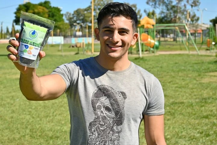 Otro emprendimiento, cofundado junto con otro compañero, es Hidroplus, “es un hidrogel que absorbe el agua, la retiene y la aporta a medida que la planta lo necesita, pudiendo reducir hasta un 50% su uso en el riego y tiene un uso potencial en revegetación y reforestación de especies nativas en zonas áridas”, explicó Córdoba.