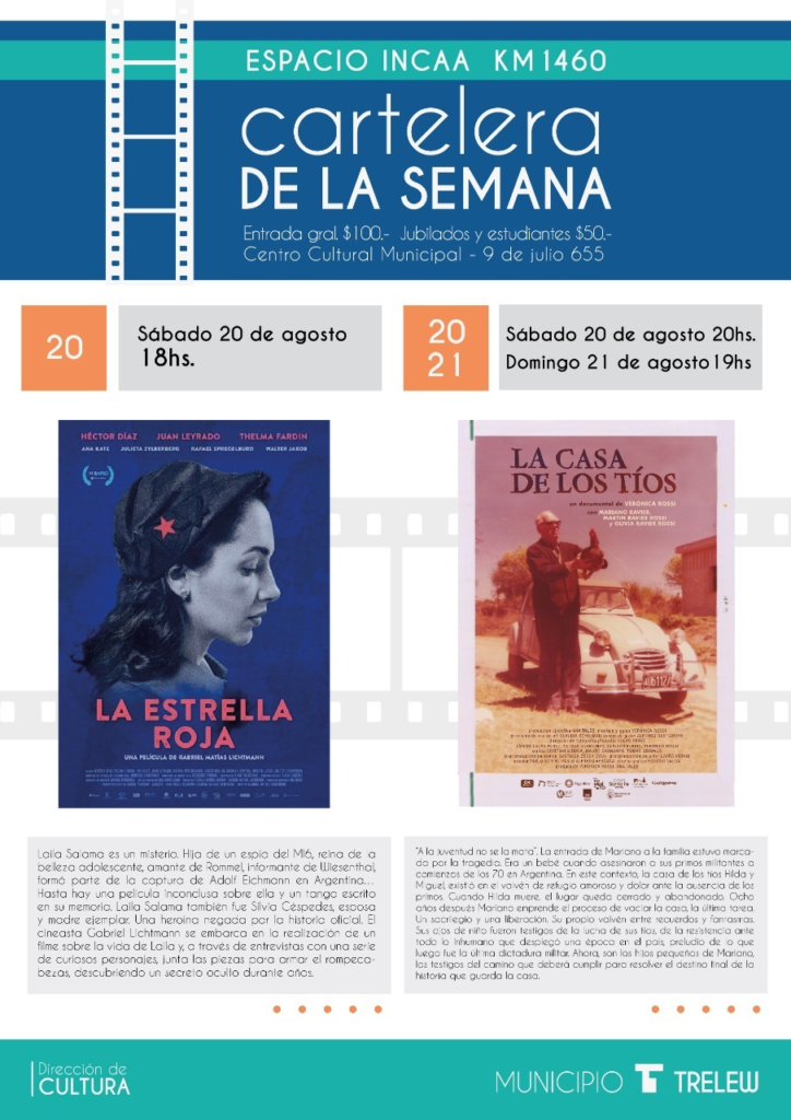 Este fin de semana, la cartelera de cine municipal Espacio INCAA, que funciona en el Centro Cultural Trelew, incluirá la proyección del film “La Casa de los Tíos”, que se encuentra encuadrada en la temática vinculada con La Masacre de Trelew.