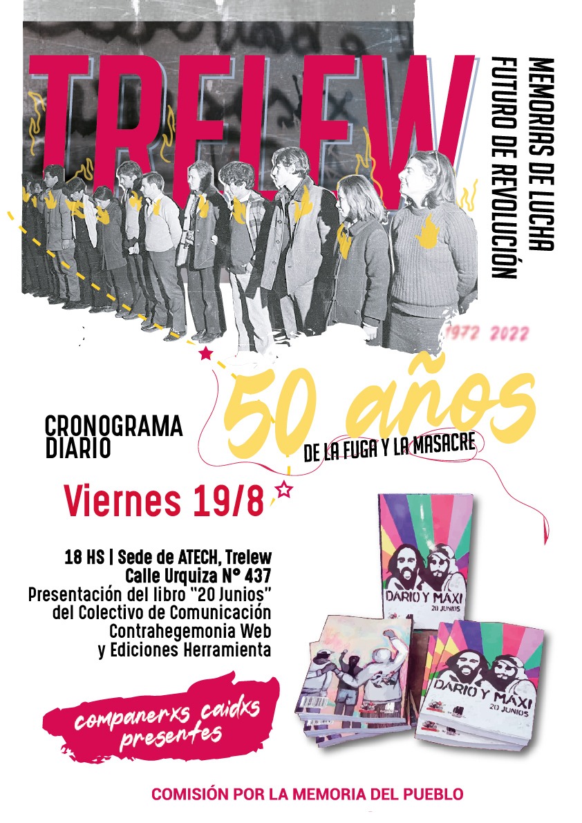 El programa de la Comisión por la Memoria del Pueblo continuará el viernes en la sede de ATECH (Urquiza N° 437), con la presentación del libro “20 Junios” del Colectivo de comunicación Contrahegemonía Web.