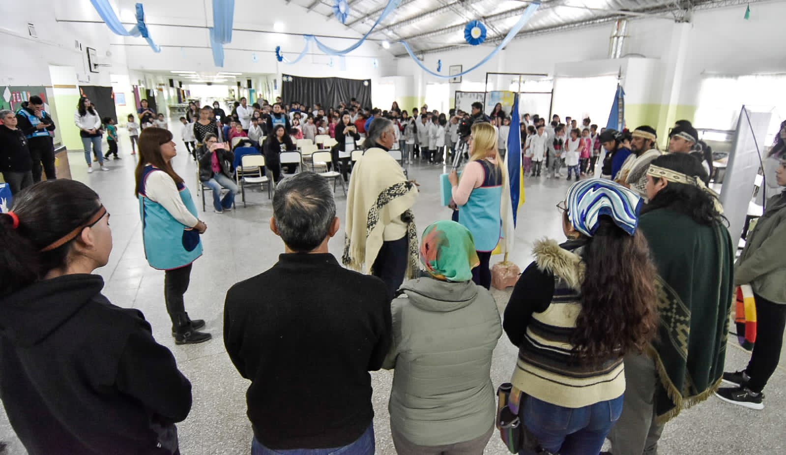 En el acto estuvieron presentes el director de Pueblos Originarios, Marcos Calfunao, el asesor legal de esa área municipal, Vicente Ledesma, miembros de distintas comunidades locales, autoridades, maestros y alumnos del establecimiento educativo.