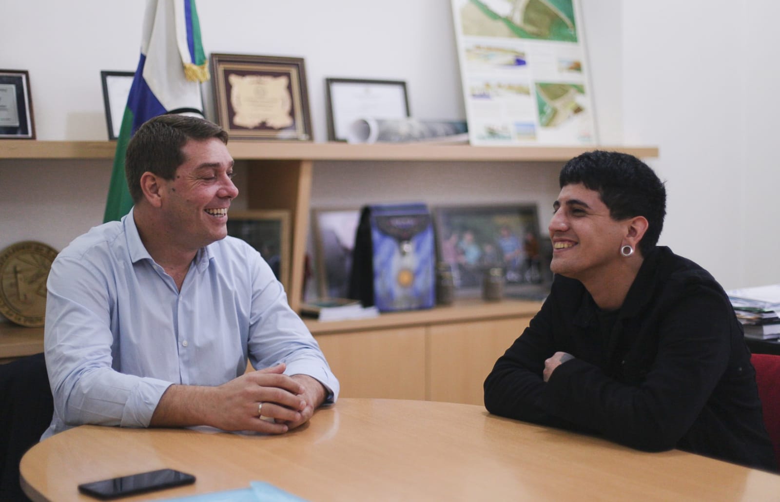 El intendente de Rawson, Damián Biss, recibió este miércoles al joven artista Yhosva Montoya, oriundo de Gaiman y ganador de la última edición de La Voz Argentina, que se emitió por Telefe.