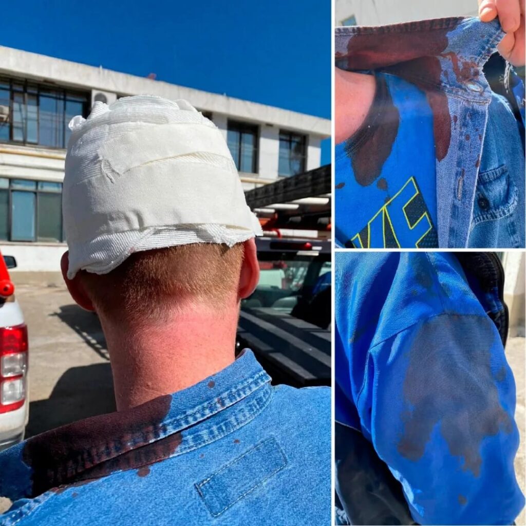 Ambos operarios intentaron resguardarse detrás de la camioneta, pero el violento los persiguió con intención de continuar el ataque hacia la operaria.