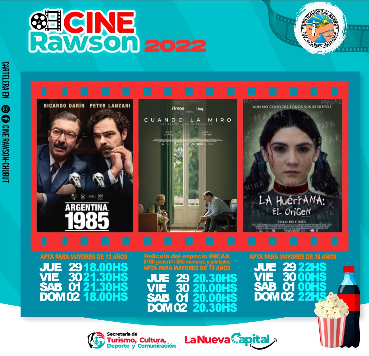 Sosa invitó “a todos los vecinos amantes del buen cine a acercarse, a seguir contemplando el buen cine” comentando que los horarios “siguen durante el día jueves a las 18 horas, el viernes y sábado a las 21 horas y el domingo a las 18 horas con el estreno de Argentina, 1985”.