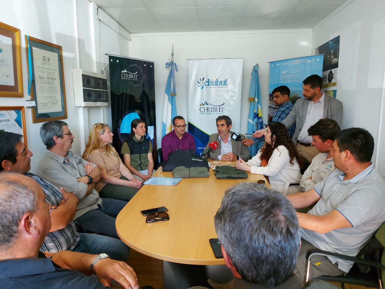 En el acto de entrega de esta indumentaria estuvieron presentes representantes de guardafaunas de Punta Tombo; Nant & Fall; Punta Loma; Los Altares y Península Valdés, quienes recibieron los equipos y luego mantuvieron una reunión con el ministro, Gaffet. La vestimenta oficial consta de chombas, remeras térmicas, pantalones, camperas, buzos polar y rompevientos.