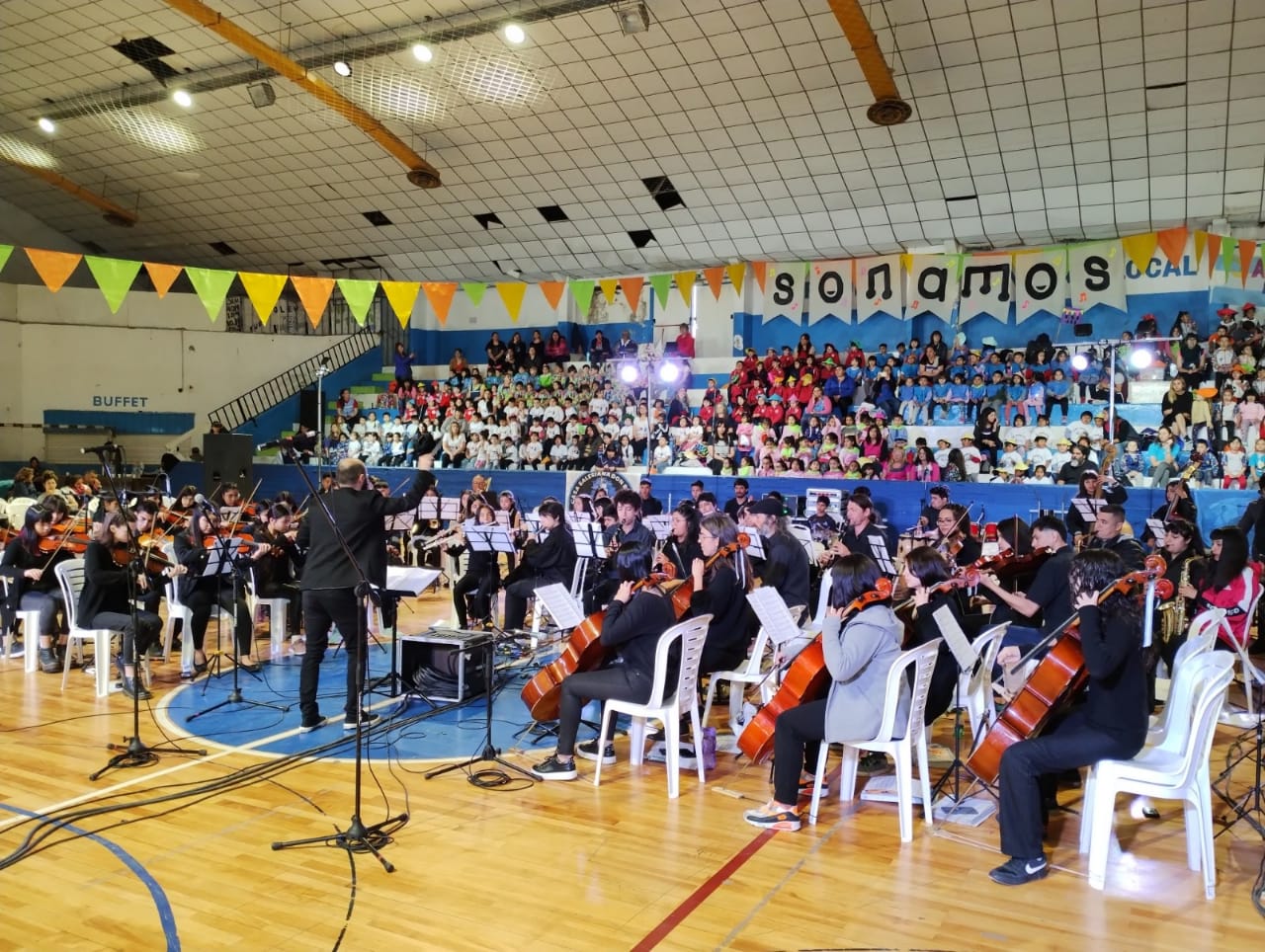 La Orquesta del barrio INTA presentó el concierto “Sonamos” ante cientos de niños de diferentes jardines de la ciudad y la zona. La propuesta musical se celebró este viernes, en doble turno, en instalaciones del gimnasio Municipal N°1. Fue disfrutada por una multitud de pequeños que junto a los docentes de cada institución escolar y el acompañamiento de sus familias, brindaron un excelente marco.