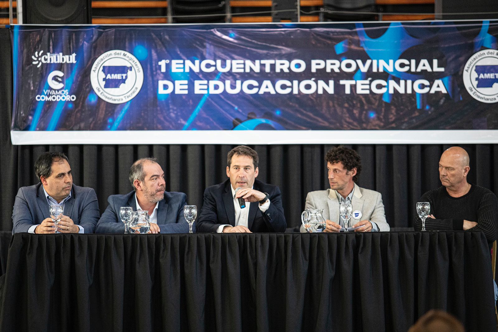 La actividad contó con la presencia del viceintendente Othar Macharashvili; el ministro de Educación de la provincia, José María Grazzini; el secretario general de la Asociación del Magisterio de Enseñanza Técnica Chubut (AMET), Rodrigo Blanco; el secretario adjunto de AMET, Ernesto Zepeda; miembros del gabinete municipal; concejales; y docentes de toda la provincia.