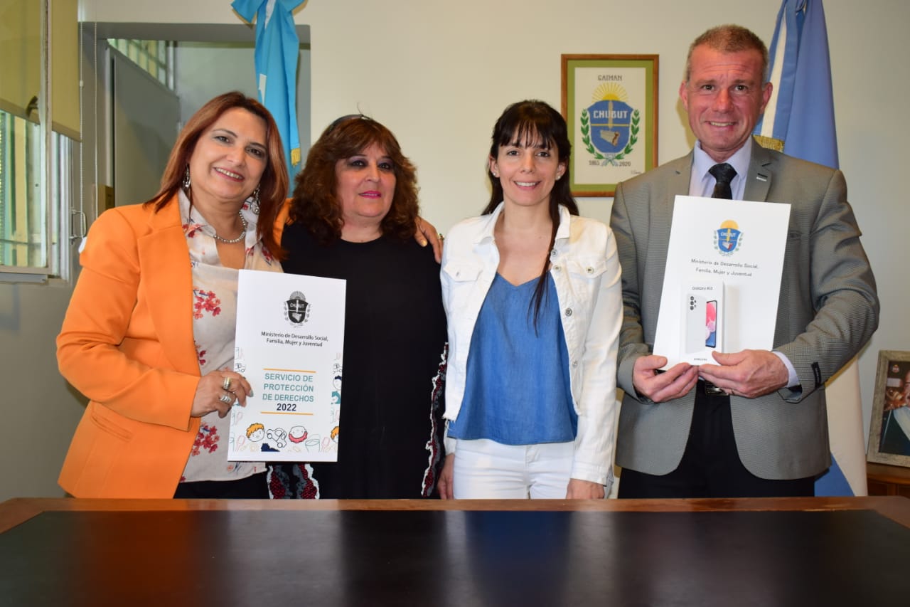 En representación del Gobierno del Chubut, la ministra de Desarrollo Social, Familia, Mujer y Juventud, Mirta Simone, y el intendente municipal de Gaiman, Darío James, rubricaron la actualización del convenio de Servicio de Protección de Derechos (SPD), que prevé cinco profesionales y un operador aportados por la cartera provincial, más un profesional y un operador por parte del Municipio, entre las principales mejoras que contiene el nuevo documento.