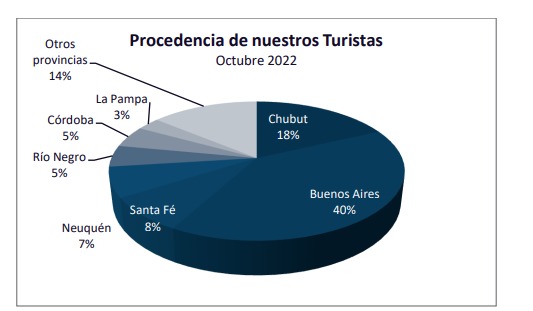 En cuanto a la procedencia, se destaca el turísmo nacional, en su mayoría procedentes de Buenos Aires (Capital Federal, Gran Bs.As. y localidades de la provincia de Buenos Aires).