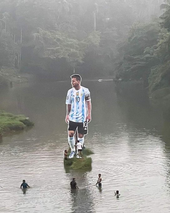 Los habitantes de Pullavoor, un pequeño pueblo de la India, instalaron en el medio de un río una gigantografía de Lionel Messi con el fin de homenajear y expresar su admiración hacia el astro argentino.