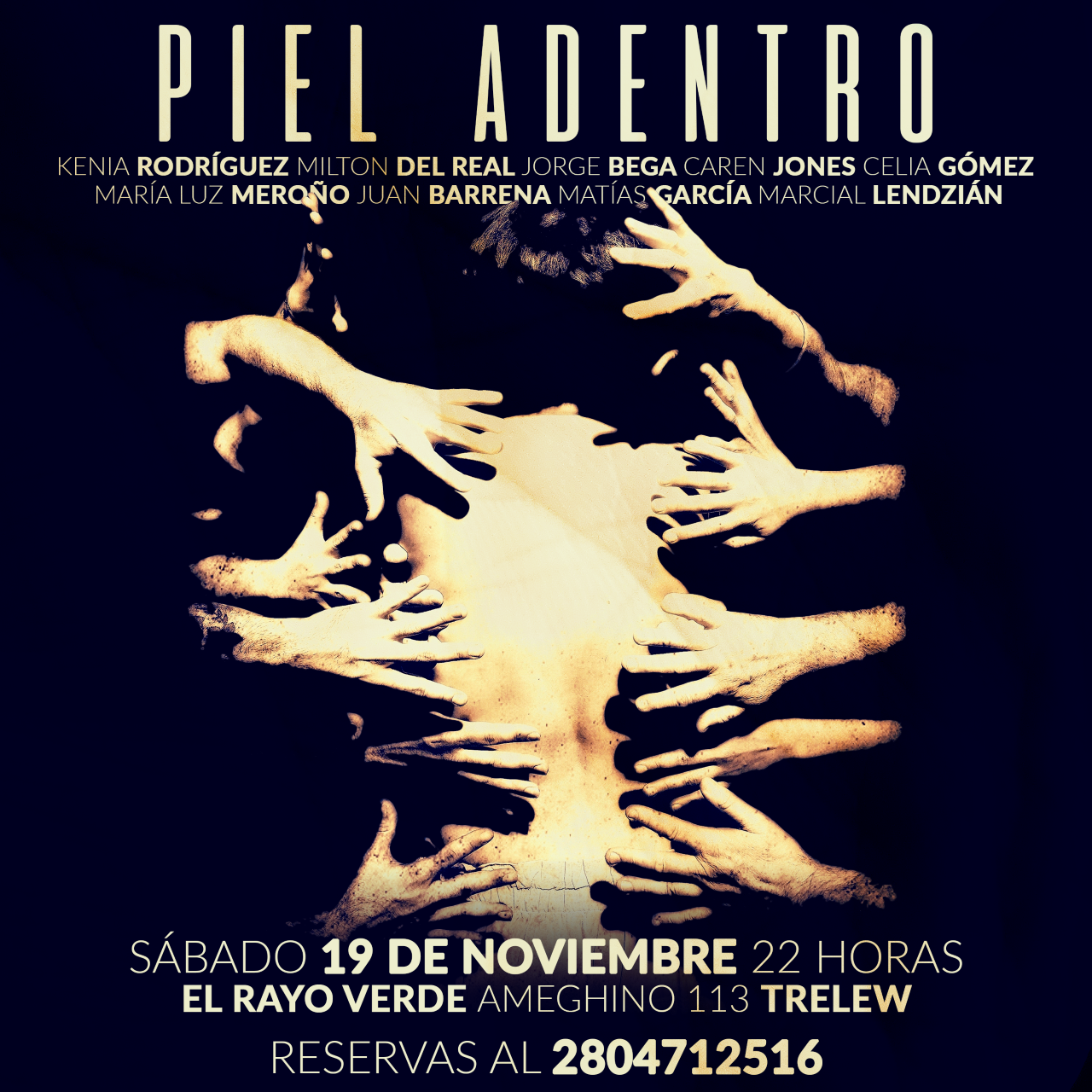 El estreno de “La piel adentro” tendrá lugar el próximo sábado 19 de noviembre a las 22.00 horas en El Rayo Verde, Ameghino 113 de Trelew. Las entradas pueden reservarse por WhatsApp al 2804712516. Las funciones continúan el sábado 26 de noviembre en El Fondo Espacio de Arte de Gaiman y el viernes 2 de diciembre en El Galpón de La Escalera de Puerto Madryn.