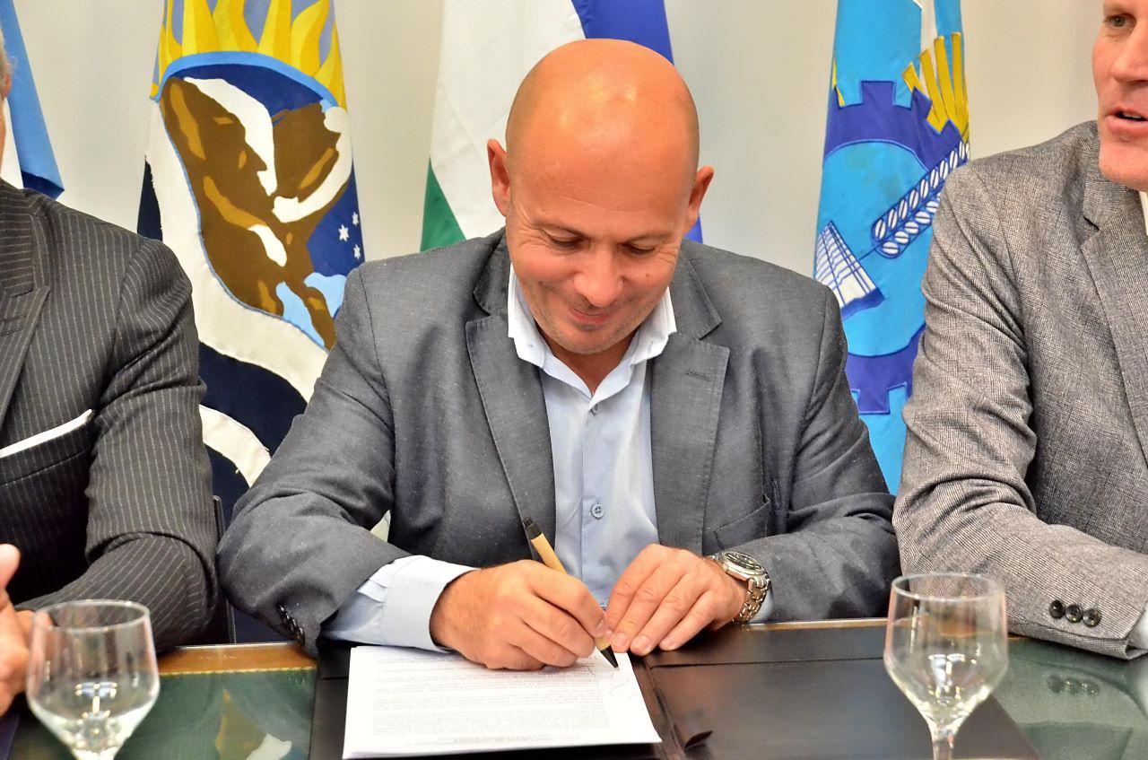 La firma se realizó en la casa de La Pampa, en la ciudad autónoma de Buenos Aires, con Mariano Fernández, Vice de La Pampa, como anfitrión.