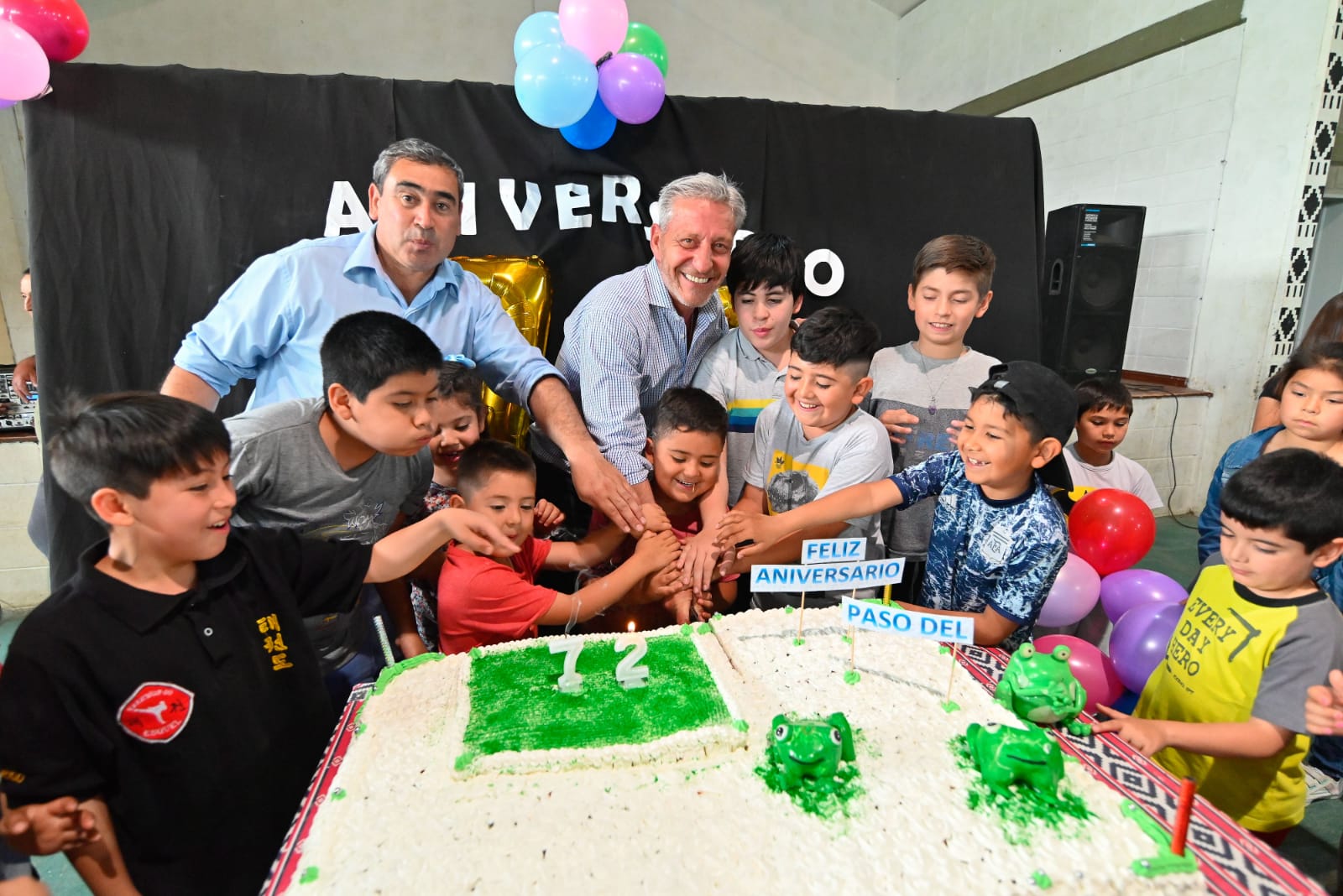 El gobernador del Chubut, Mariano Arcioni, presidió este sábado el acto central por el 72° aniversario de Paso del Sapo, firmó acuerdos para la ejecución de mejoramientos habitacionales y entregó aportes económicos y equipamiento a instituciones y productores de la comuna. Además, entregó viviendas a vecinos de la comuna.