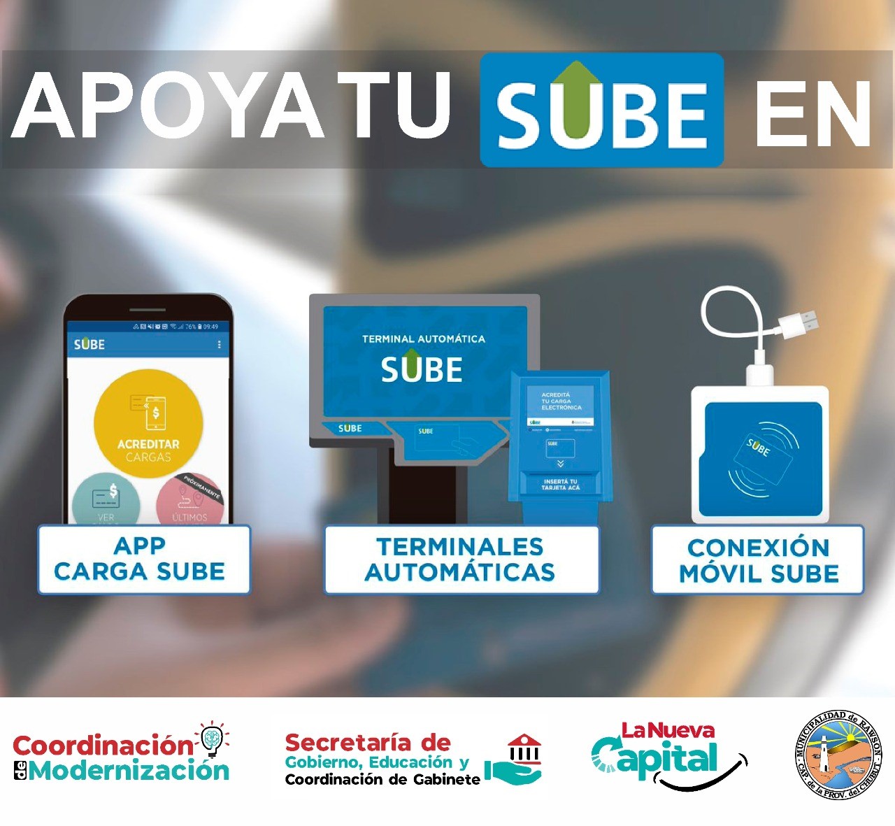 La Municipalidad de Rawson a través de la Coordinación colocó un punto nuevo SUBE para los vecinos del barrio y zonas aledañas en la oficina de Veterinaria y Abasto. La misma funciona de lunes a viernes en el horario de 7 a 19 y los días sábados de 7 a 12.