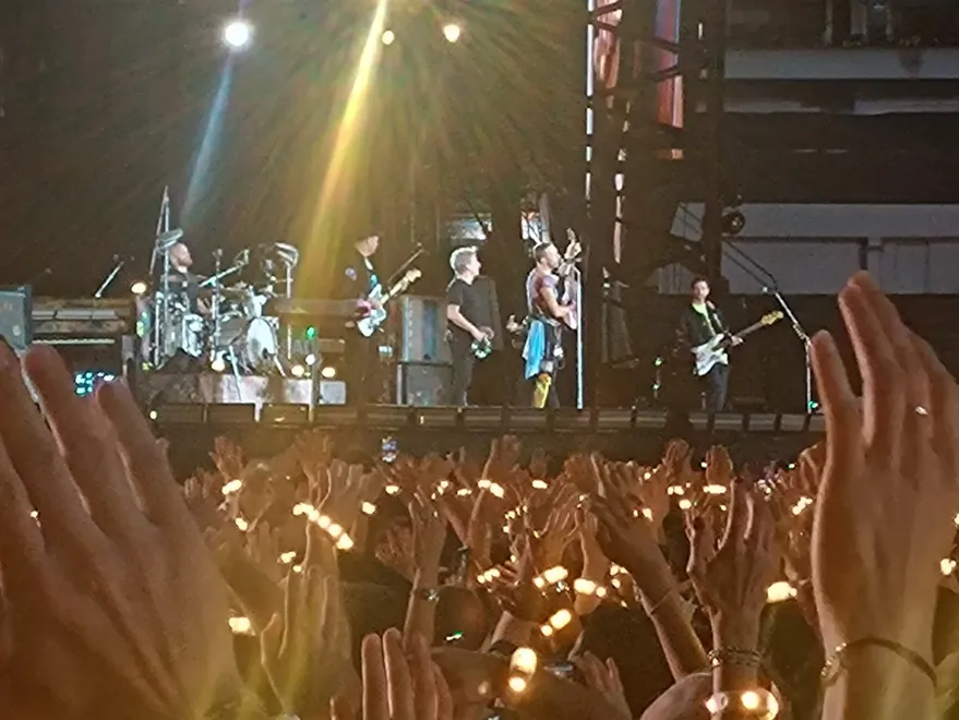 Tras saltar al compás de los temas de Soda, el Monumental entero sigue las indicaciones de Chris Martin, quien pide que todos levanten la mano como una señal al cielo. En ese momento, las pulseras que le entregaron a cada espectador al inicio del recital se tiñen de amarillo y juntos –Soda StereoColdplay y el público- le cantan “Yellow” a aquellos que ya no están. Gustavo Cerati, un “ausente-presente”.