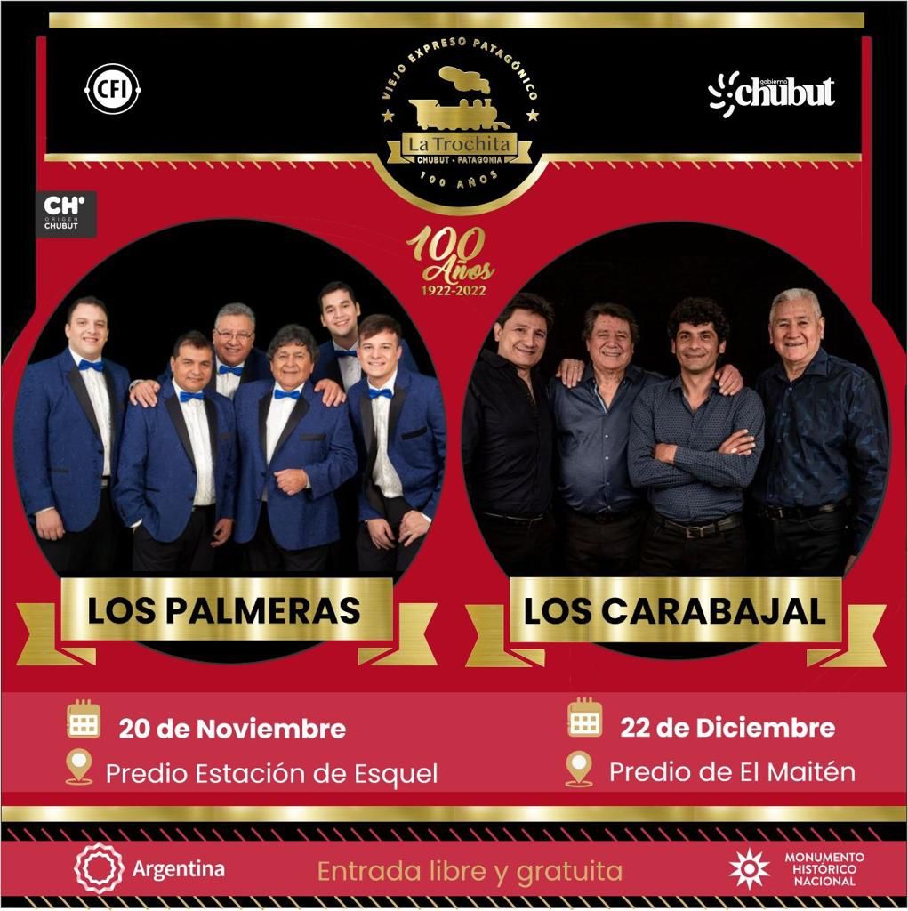 Este 20 de noviembre se presentará en Esquel el grupo ‘Los Palmeras’, y el 22 de diciembre en El Maitén ‘Los Carabajal’, además de otras presentaciones artísticas.