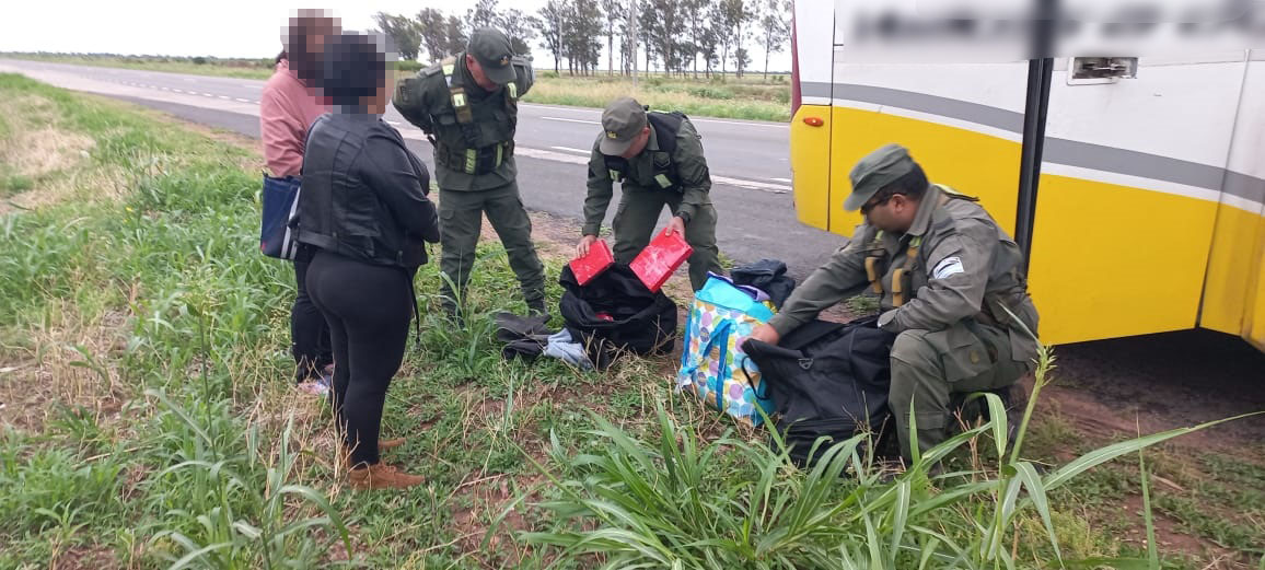 Al momento de la inspección de la bodega del rodado, los funcionarios observaron dos bolsos con anomalías y exceso de peso en relación a sus dimensiones, por lo que identificaron a sus propietarias (dos pasajeras de nacionalidad boliviana) y al llevar a cabo la apertura constataron la existencia de doble fondos en los mismos. Allí se ocultaban 12 paquetes rectangulares con una sustancia blancuzca en su interior.