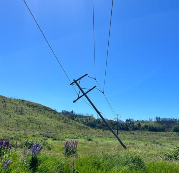 Esta tarde un camión, con su caja levantada, circuló por debajo de la Línea de 33 kv, arrastrando los cables y quebrando un poste, lo que produjo un corte de energía en las localidades mencionadas.