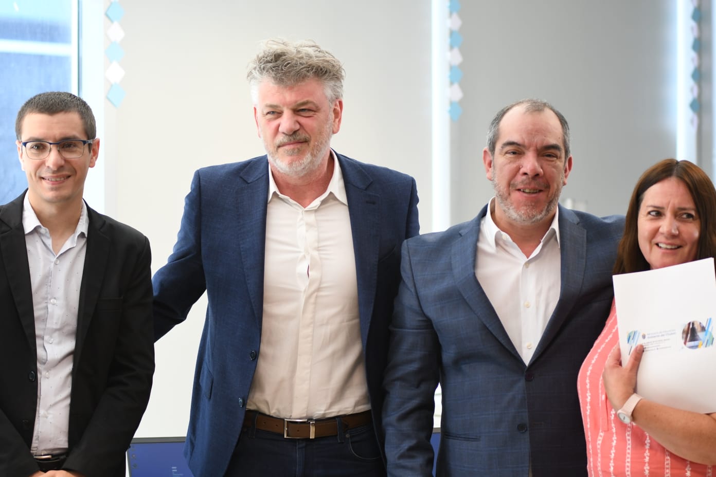 El acto de presentación fue encabezado por el ministro de Educación del Chubut, José María Grazzini; junto a los funcionarios del Ministerio de Educación de la Nación: German Lodola, secretario de Evaluación e Información Educativa; y Tomas Ciocci Pardo, director Nacional de Evaluación, Información y Estadística.