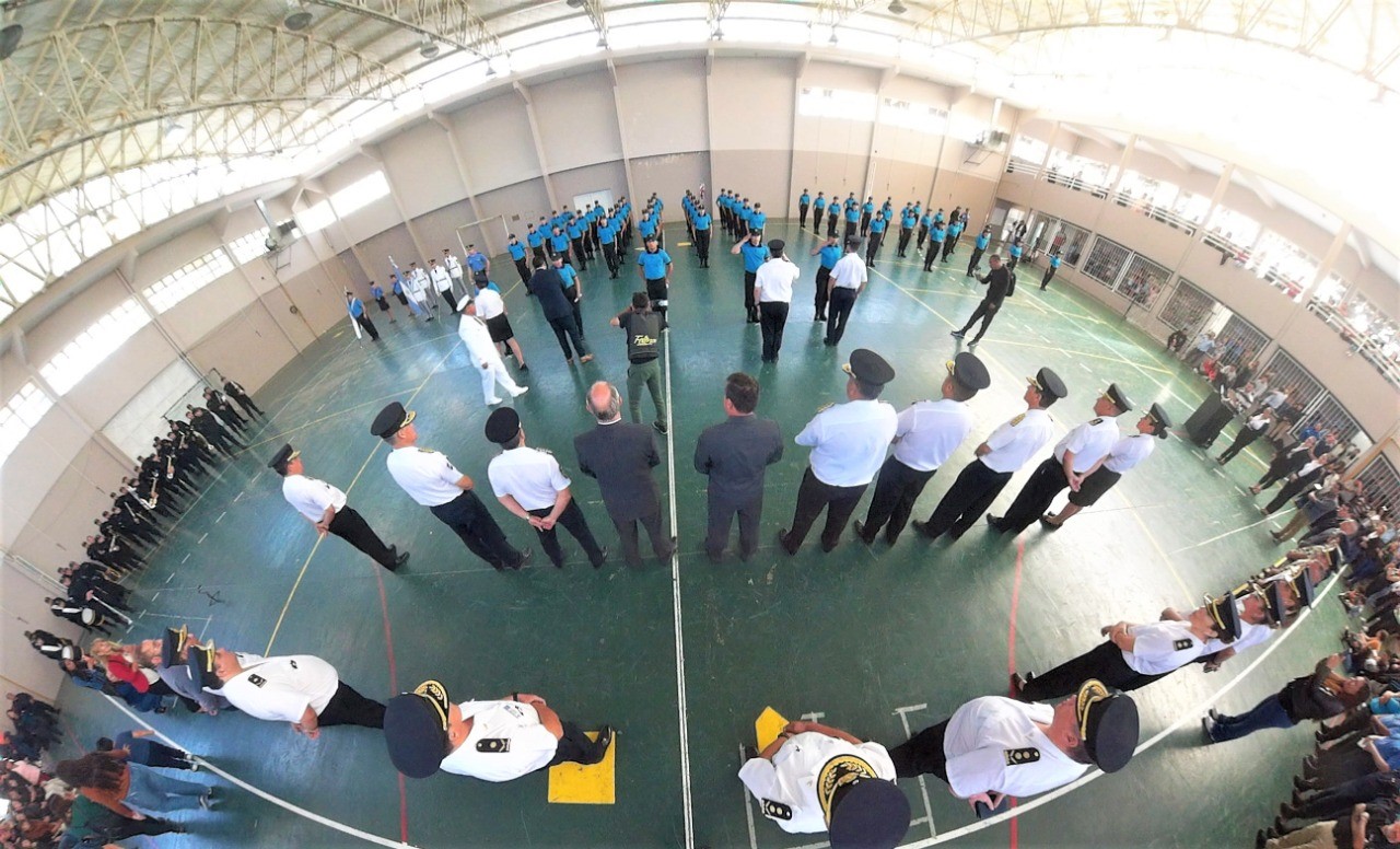 Participaron el subsecretario de Seguridad y Relaciones Institucionales, Rubén Becerra, el subjefe de Policía, Juan Cruz Campos, los directores que integran la Plana Mayor, los jefes de áreas, personal policial en actividad y en situación de retiro, autoridades de la Armada Nacional, familiares de los flamantes egresados e invitados especiales.