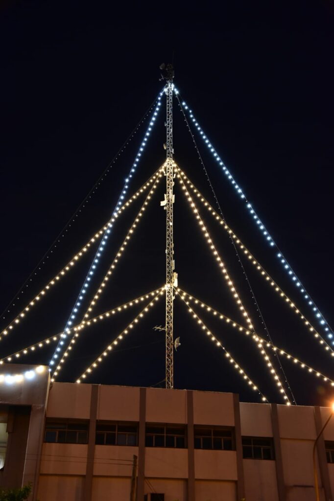 El histórico árbol de Navidad de la Dirección General de Servicios Públicos (DGSP) fue encendido por primera vez en el año 1995 y hasta el año 2012 fue el emblema de la Navidad en Rawson.