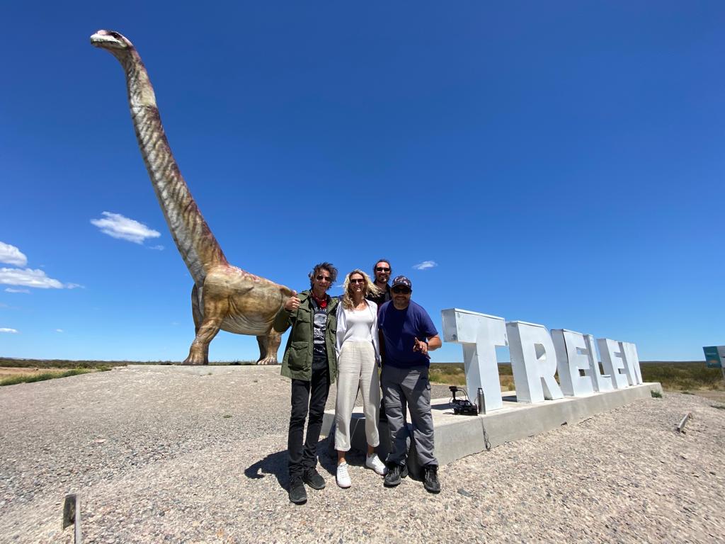 “Estamos de visita en Trelew y en un lugar emblemático como el Museo Paleontológico, al que visito por primera vez. Aunque a la ciudad es mi vigésima visita que realizó. Lógicamente estamos cubriendo con el equipo de viaje de la Cocina de los Calamaro”, explicó el artista ni bien ingresó al MEF para realizar la grabación pertinente a un capítulo que seguramente formará parte de la temporada 2023.