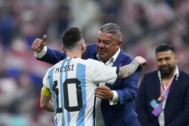 “Chiqui” Tapia acompañó el mensaje con una foto del plantel “albiceleste” en el momento en el que Lionel Messi levantaba la Copa del Mundo.