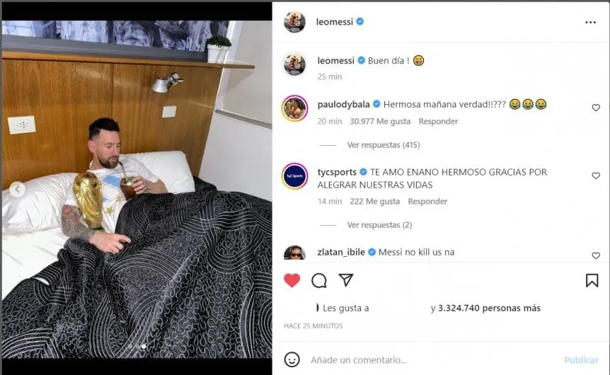 Una vez que los futbolistas se instalaron en el complejo 2 del lugar, de uso exclusivo para la selección mayor, se fueron a descansar. Pero alguien que no durmió sólo. A través de una publicación en su cuenta de Instagram, Lionel Messi se mostró con el trofeo más preciado. Y lo hizo en su cama, la de su habitación de siempre en el predio que visita cada desde que es muy chico.