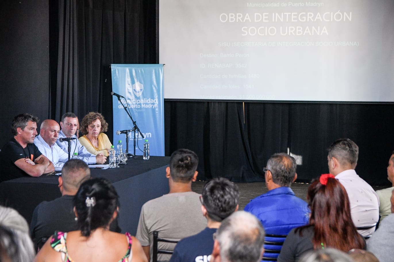El intendente de Puerto Madryn, Gustavo Sastre, presentó el programa Obras de Integración Socio Urbana para el barrio Presidente Perón. Esto se da como resultado de las gestiones del Jefe Comunal ante la Secretaría de Integración Socio Urbana, dependiente del Ministerio de Desarrollo Social de la Nación.