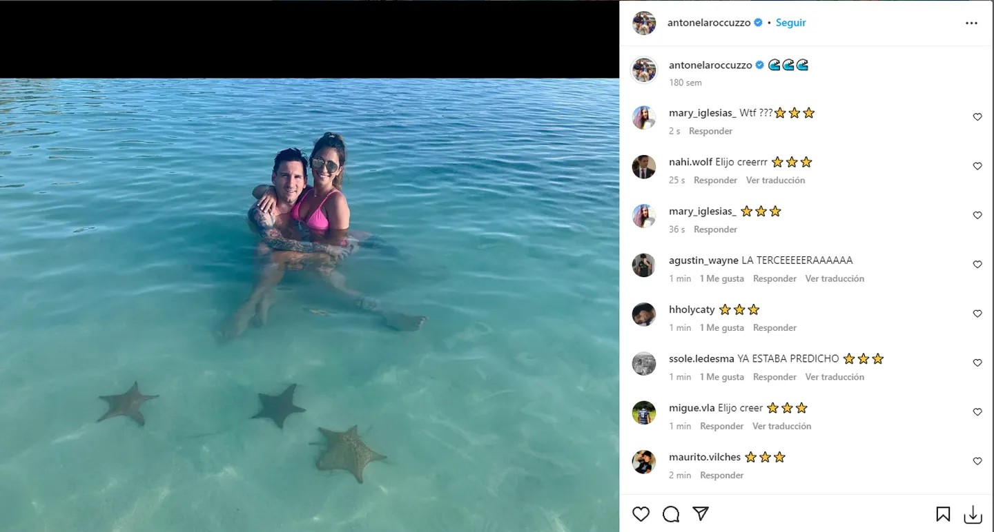 El posteo fue recuperado por diversas cuentas en las redes y los usuarios fueron a comentarlo. “La tercera”, “Elijo creer”, “Siempre lo supieron” o “Estaba predicho”, fueron algunos de los mensajes que le dejaron a Antonela en la foto que subió hace casi cuatro años.